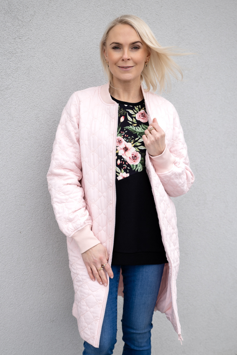 VERO MODA dygsniuotas raštas rožinė moteriška pavasario-rudens striukė Mallie – MADA parduotuvė