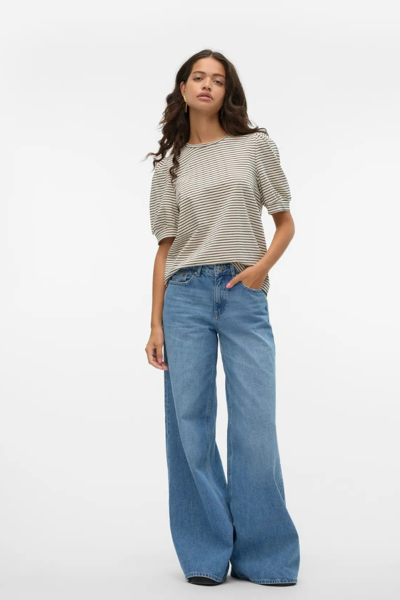 VERO MODA Ekologiškos medvilnės marškinėliai Kerry beez juodi dryžuoti-NAUJIENOS-DABAR TURIME