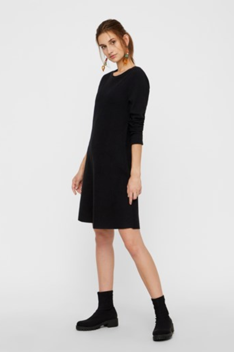 VERO MODA moteriškas megztinis-suknelė ilgomis rankovėmis Nancy black-WHOLDER STOCK-SUPER KAINA