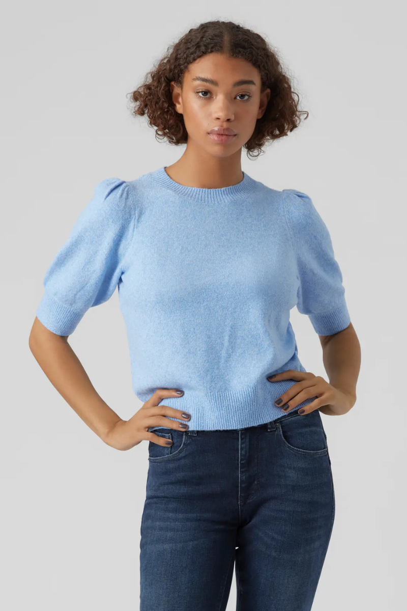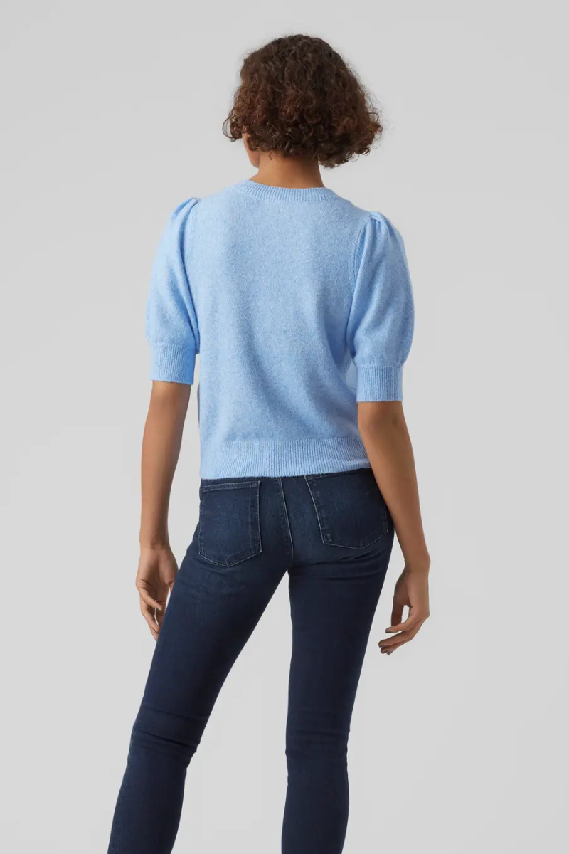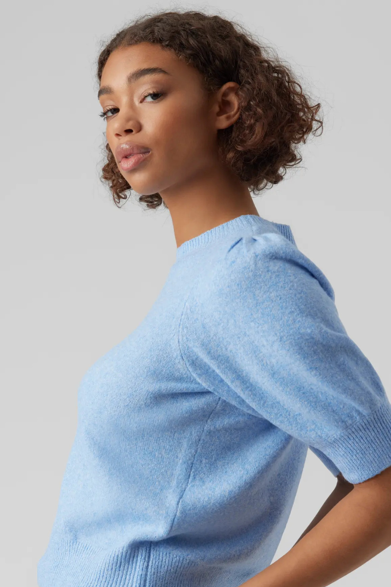 VERO MODA moteriškas megztinis aukštu kaklu Glory blue-WHOLDER