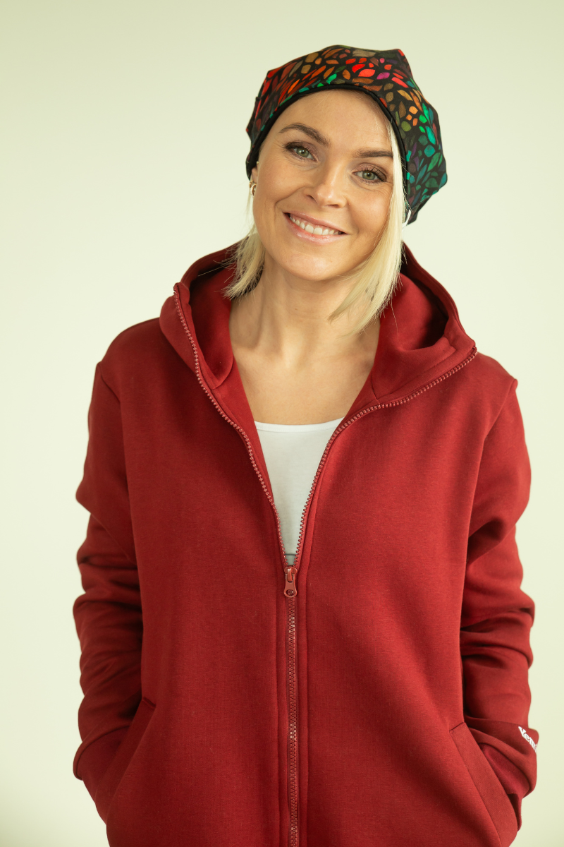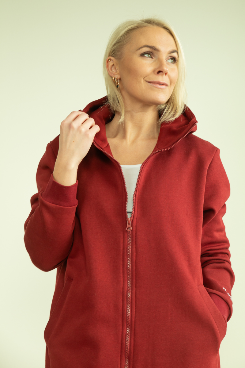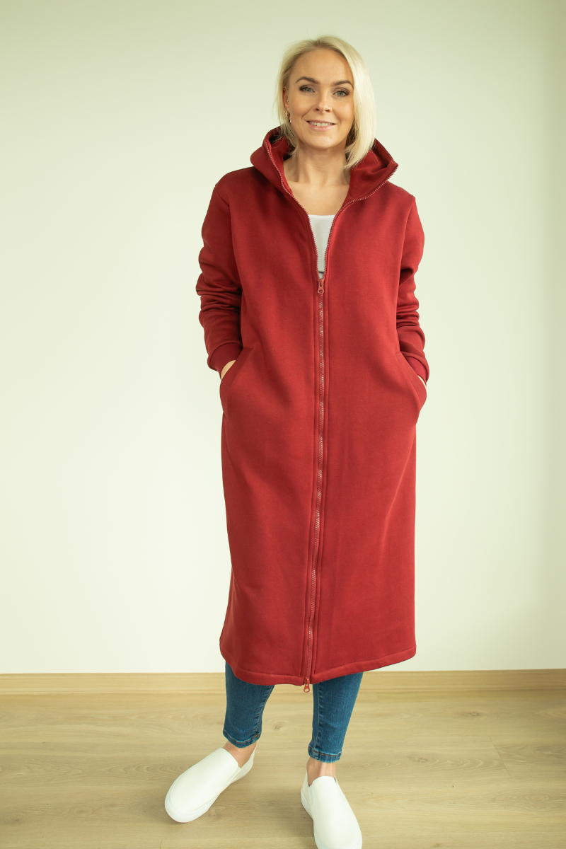 YEMI DISAIN bordo spalvos ilga palaidinė su gobtuvu – L ir XL – NAUDOJAMA