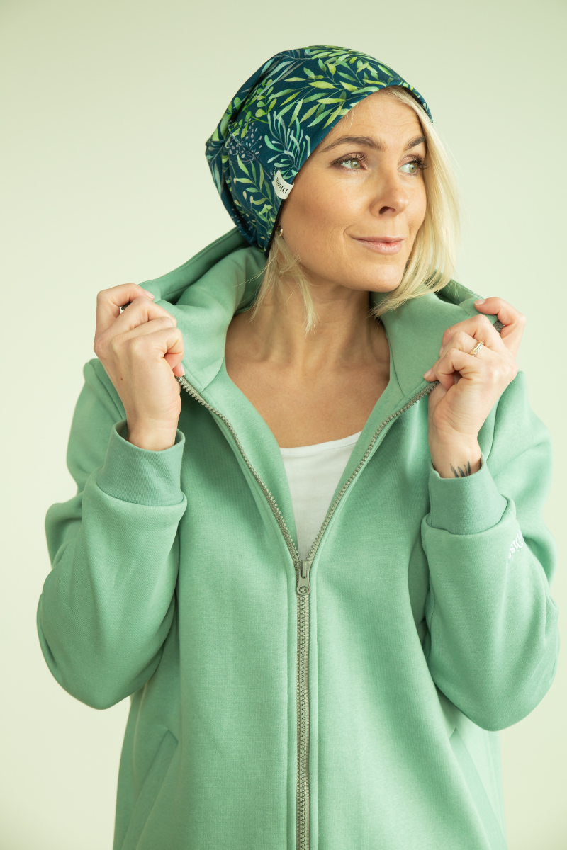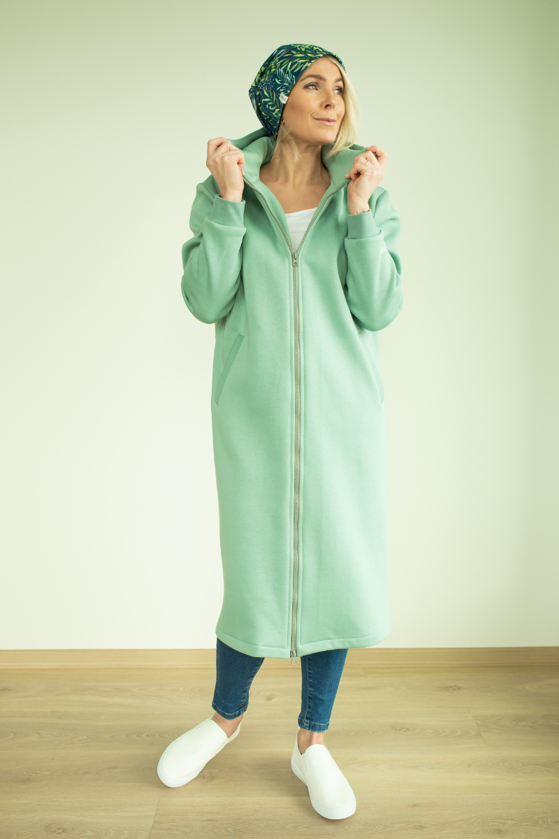 YEMI DISAIN mėtų žalumo žalia ilga palaidinė su gobtuvu, striukė ir paltas, M dydžio (38-40)