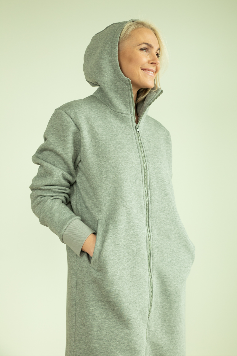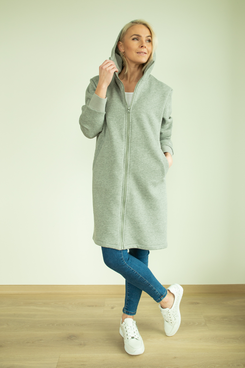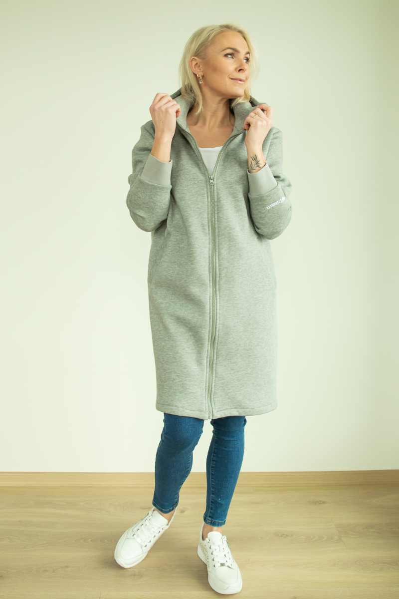 YEMI DISAIN šviesiai pilka ilga palaidinė su gobtuvu ir striukė pagal užsakymą