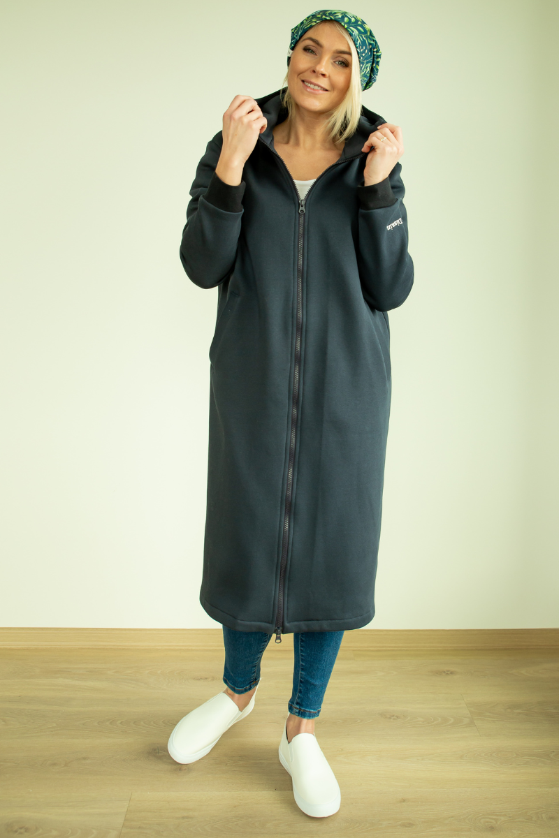 YEMI DISAIN tamsiai pilka palaidinė su gobtuvu – jau greitai XL sandėlyje