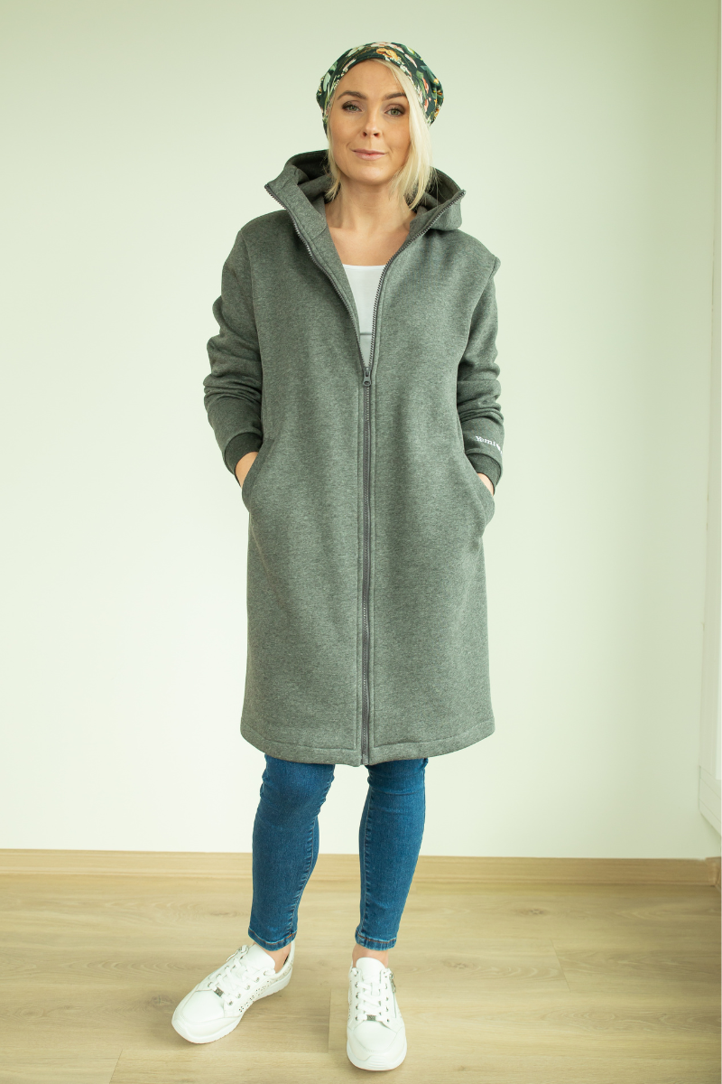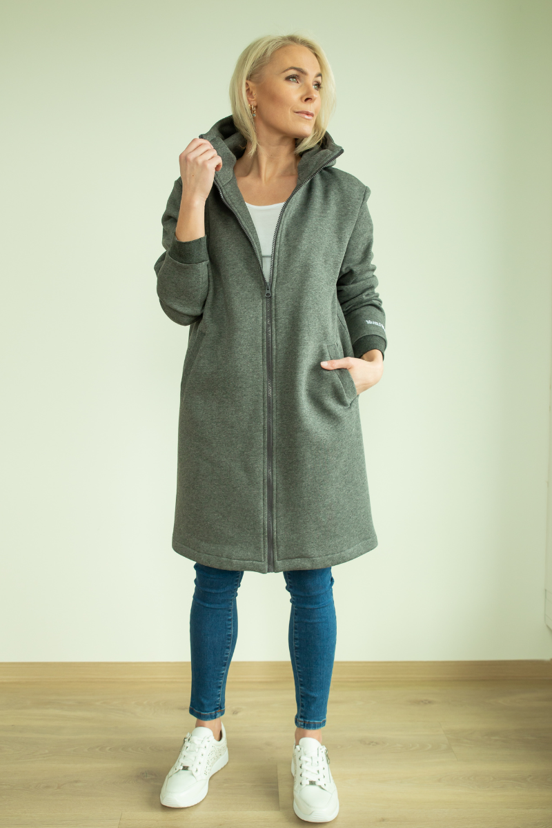 YEMI DISAIN tamsiai pilka palaidinė su gobtuvu – jau greitai XL sandėlyje