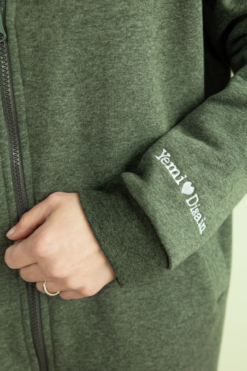 YEMI DISAIN miško žalia palaidinė su gobtuvu ir striukė vienspalvė – paskutinis XL sandėlyje DABAR IŠPARDUOTAS!